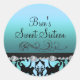 This Elegant customizable Sweet Sixteen sticker features a blue damask pattern on a black background. Customize it by adding your details in the font of your choice! PLEASE NOTE that the jewels are printed images.