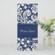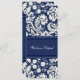 Elopement announcement cards in elegant dark navy blue and cream off white classic floral damask pattern, fully customizable with your names and wedding details, the perfect way to announce your elopement to friends and family. Available in a wide range of matching wedding products.