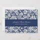 Marriage announcement cards in elegant dark navy blue and cream off white classic floral damask pattern, fully customizable with your names and wedding details, the perfect way to announce your wedding to friends and family. Available in a wide range of matching wedding products.