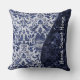 Blue Damask Pattern Glam Glitter Personalized Throw Pillow