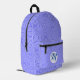 Blue Squiggly squares with monogram backpack. A circle of white squiggly squares holds the initial to personalize your item. Great for back to school, day hike, or just being out and about.