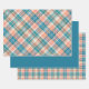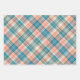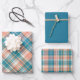 Blue, Dark Teal, Salmon & White Plaid Wrapping Paper Sheet