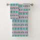 Here's a pretty nordic Holiday Season three piece towel set that easily be utilized through the winter and beyond. It features a nordic pattern in dark blue, teal, white and grey with accents of red. The predominant images are deer and snowflakes. Very tasteful and attractive, and it fits into almost any decor.