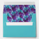 Purple and turquoise blue Dendrobium orchid wedding envelope. Simple wedding envelope design that features a beautiful orchid variety called a blue dendrobium. It is teal / turquoise in colour paired with violet and royal purple. A great flower choice for peacock wedding colour theme.