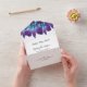 Purple and turquoise blue Dendrobium orchid tearaway all in one wedding invitation and RSVP. Simple wedding invitation tearaway RSVP card design that features a beautiful orchid variety called a blue dendrobium. It is teal / turquoise in colour paired with violet and royal purple. A great flower choice for peacock wedding colour theme.
