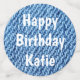 Blue denim jean material. Personalize with name and celebration of your choice.