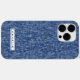 iPhone case featuring a printed blue denim texture and your name in a modern, masculine sans serif font.