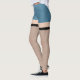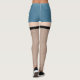 Blue denim shorts with pale skin tone legs with black fishnet stockings leggings