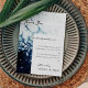 This Blue Destination Wedding Reception Thank You Card design pairs sleek and classic white with striking dark royal blue watercolor ocean waves as a gorgeous backdrop for sophisticated minimalist typography and boho script details. Perfect for a modern luxury nautical aesthetic, with a unique moody navy beach style. This beautifully curated collection will set the tone of polished elegance for your dream destination wedding or special event. If you have any questions or special requests concerning this design, please just ask!