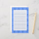 Simple blue tone stationery with a background border pattern of blue chequered diamonds. Writing area in centre is lined and semi-transparent with background pattern showing through.