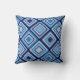 Throw pillow with a large print of diamond shapes in various shades of blue.