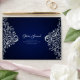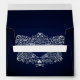 This envelope design exudes pure elegance and luxury, combining a deep black background with a lavish silver damask pattern that sparkles with a diamond-like effect. The intricate swirls, florals, and ornamental motifs frame the text area beautifully, creating a glamourous and sophisticated impression. The shimmering silver detailing against the dark backdrop makes it feel both formal and celebratory, perfect for upscale occasions.