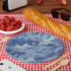 Custom paper plates and bowls featuring light shades of blue 8-bit digital camouflage. Several sizes available.