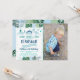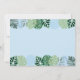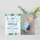 This adorable birthday invitation features blue dinosaurs with tropical watercolor leaves.