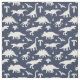 Navy blue fabric patterned with cute white jurassic dinosaurs