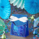 Personalized, elegant custom party favour box for womens 18th birthday parties with glitz and glamour. Beautiful blue and white party favour boxes for girls with a funky retro disco mirror ball, glamourous printed image rhinestone glitter, sequins, jewels sparkle high heel stiletto shoes, and glittery musical notes / music notes with sparkles on a vibrant blue lights and sparkles background. Chic, classy, cute, girly, modern party favour boxes for 18th birthdays in trendy, fashionable colours. These are groovy, stylish, sophisticated, pretty favour boxes . If you need any assistance customizing your product please contact me through my store and I will be happy to help.