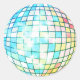A set of round stickers featuring a blue and yellow disco ball design! Perfect for a 1970s theme party or disco bachelorette.