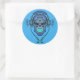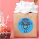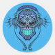 This elaborate DJ sugar skull design is decorated with intricate swirls and dot patterns. Headphones sit on top of the skull with two wires hanging below. A shadow falls onto the circular mesh background making it look like the skull is floating just above the surface. This aggressive Day of the Dead inspired image is perfect for musicians and music lovers.