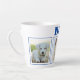 Cute Blue Dog 3 Photo Collage with Name Latte Mug. Name of the pet in blue colour and 3 photos in blueframes. Add 3 photos and a name.