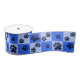 Blue Dog Paw Print Checkerboard Satin Ribbon