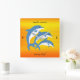 Make a splash with this clock that features blue dolphins dancing in the tropical sun and the catchphrase "Make Waves Everyday!" The perfect way to add a bit of whimsy to your child's room! Customize by adding a name or message.