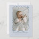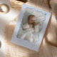 Whimsical and sweet birth announcement card featuring hand drawn photo frame of blue line with bows.