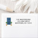 This return address label is decorated with a watercolor of a blue door and pot plants.