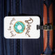 The Blue Doughnut Touch My Bag Luggage Tag features a blue glazed doughnut with chocolate icing drizzle surrounded by a play on words using “Doughnut touch my bag!” as a fun warning for other people to keep their hands off your luggage. This silly design is perfect for anyone with a sweet tooth.