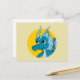 Postcard with illustration of cute blue dragon girl / fairy-tale design for kids in yellow circle , design for kids by Maxi Harmony,