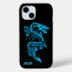 Fantasy iPhone case done in black, with awesome graphics of a turquoise blue coloured Chinese style dragon. the turquoise text, at the bottom, is ready to personalize for yourself or as an outstanding gift idea to your favourite fantasy fan.