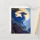 Blue Dragon Night Full Moon Fantasy Art Postcard