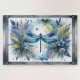 Blue Dragonfly Botanical Watercolor Jigsaw Puzzle