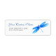 Looking for a blue dragonfly return address label template to beautify your envelopes? Effortlessly personalize these unique blue watercolor return address label templates! They elegantly complement the dragonfly business cards, thank you note cards, wedding invitations, and other unique dragonfly items in its collection. Category: personalized dragonfly address labels; return address label templates with dragonflies; and dragonfly labels and stickers. Colours: blue and white with hints of purple and grey.