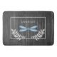 Add an elegant touch to your bath decor with a Blue Dragonfly Rustic Personalized Bath Mat. Bath mat design features a vibrant dragonfly adorned with delicate foliage against a dark grey rustic wooden background. Additional gift items available with this design as well as a variety of colours.