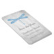 Elegant and simple save the date flexi magnet featuring a blue dragonfly against a grey grunge background. This design is a unique choice for announcing a modern wedding. Easy to customize with your wedding details. Click "Customize It" to find more personalization options.