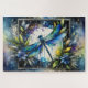 Blue Dragonfly Watercolor Botanical Jigsaw Puzzle