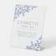 blue and white hand drawn growing leaf botanical art wedding confetti take me sign. Simple leaf design in blue and grey on white. Personalize with your own words, currently reads Confetti Take Me So when the newly weds walk your way you can throw this confetti and shout. Hooray! Ideal to use for guests to take a particular type of confetti so you get the confetti all looking the same or is suitable if your venue has environmental restrictions and only allows leaves or real petals to be used that you have to get approved. Other colours and matching items available. © Original leaf drawing and design by Sarah Trett for www.mylittleedenweddings.com on zazzle.