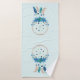 Towel set with a pretty watercolor dreamcatcher. Blue, turquoise and cream colours. Decorated with feathers, beads and flowers.