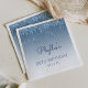 These chic, feminine 80th (or any year) birthday party paper napkins feature a sparkly blue faux glitter drip border and blue ombre background. Personalize them with the guest of honour's name in blue handwriting script, with her birthday and date below in sans serif font.