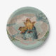 Paper Easter Plates showing Baby Chicks on blue eggs surrounded by a flowered egg shell with ribbons and wishing you Happy Easter!
