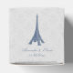 Personalize a unique wedding favour box for guests with this unique Blue Eiffel Tower Damask Wedding Favour Box. Favour box design features the Eiffel Tower against a delicate damask lace background. Personalize with the groom and bride's names along with the wedding date. Additional wedding stationery available with this design as well.