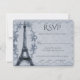 Send guests a simple and elegant Blue Eiffel Tower wedding RSVP card. RSVP card design features the Eiffel Tower adorned with a fancy flourish frame against a grunge background and postal stamp embellishment. Additional wedding stationery available with this design as well. Need help with customization? Please contact me and I will work out the wording and details to fit this design to your satisfaction.