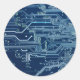 blue electronic circuit board computer pattern classic round sticker