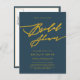 Blue Elegant Gold Script Minimalist Bridal Shower Invitation Postcard
