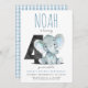 Cet invitation présente un éléphant bleu pour une fête de quatrième anniversaire. Le dos de l'invitation a un motif bleu en vichy ; parfait pour le thème animal de la jungle garçon fête de 4ème anniversaire. Personnalisez l'invitation avec vos détails et vous avez les options pour acheter des invitations imprimées ou un téléchargement numérique.