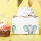 Blue Elephant Baby Boy Pattern Template Name Wrapping Paper