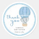 Add a sky-high touch of sweetness to your baby boy shower with these adorable round "thank you" stickers, featuring a charming watercolor elephant soaring in a soft blue hot air balloon, perfect for sealing favour bags. Personalize each sticker with the mom-to-be's name and the baby shower date for a custom touch that ties your theme together beautifully. Whether you're going for soft storybook vibes or a dreamy adventure theme, these stickers are the perfect finishing detail.