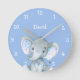 Blue Elephant Cute Baby Boy Name Personalized Round Clock