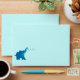 Cute and customizable blue baby elephant blowing hearts for a baby shower.