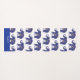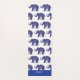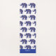 Personalized yoga mat done with a white background and a blue decorative elephant pattern. A blue band, across one end, has white custom text ready to personalize. Same design is featured on both the front and backside of the mat.